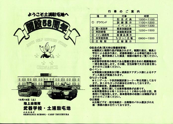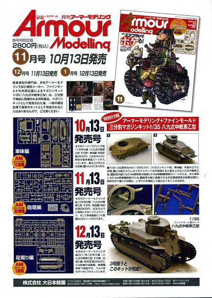 パンフレットによると、「八九式中戦車」のデモンストレーションは12:30からだったので、その間に小火器の展示室や展示されている戦車の写真を撮る為、基地内をうろうろ。なぜか、ショーウインドウの上に「月刊アーマーモデリング」の広告チラシが「ご自由にお取り下さい」と書かれて大量に置かれてました。